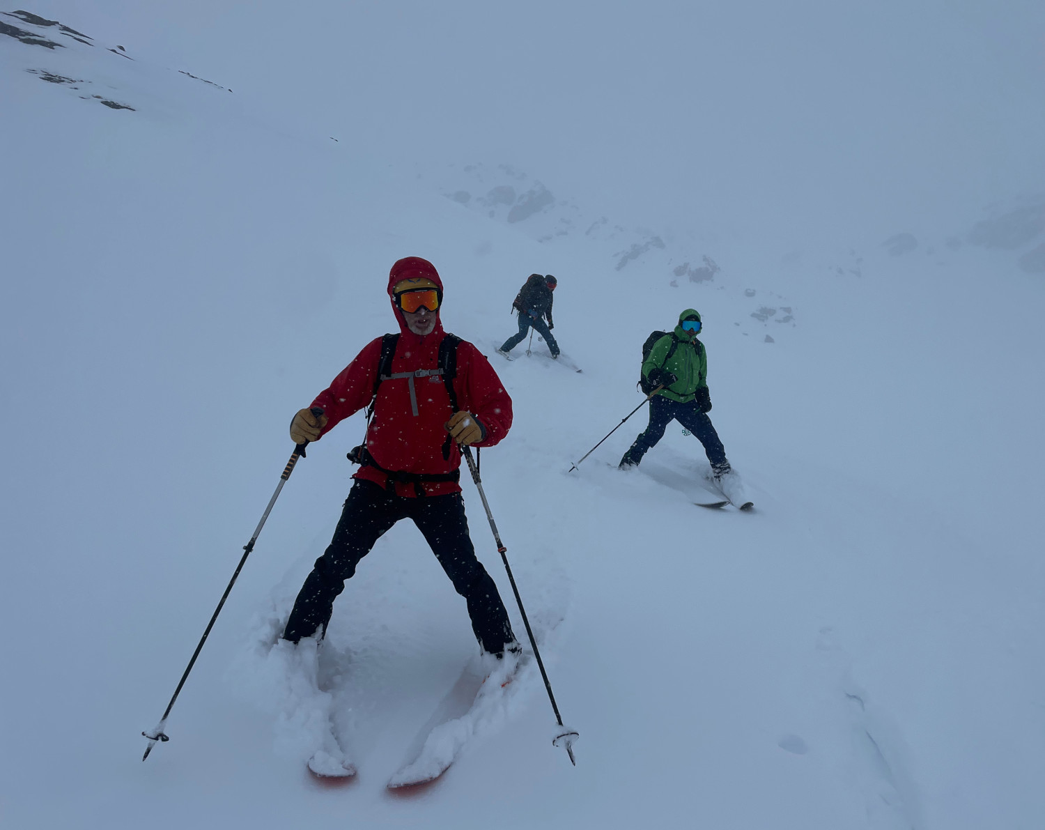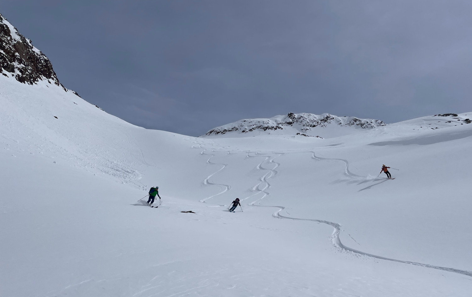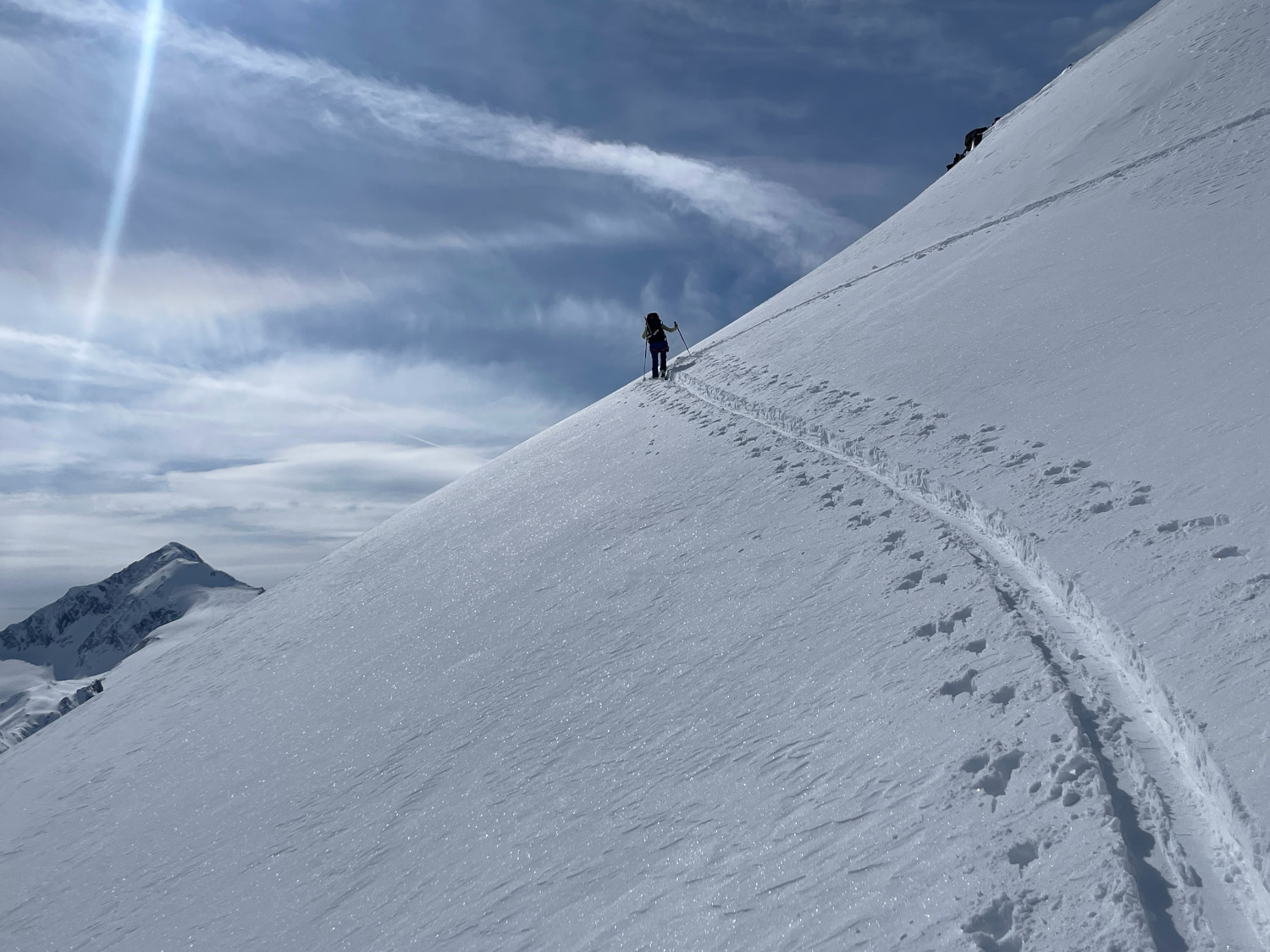 4 Tage Skitransalp-Feeling, wobei die Durchquerungsetappe in diesem Format so gewählt ist, dass sie mit einer durchschnittlich/guten Kondition (ca. 1200 Höhenmeter im Aufstieg / Tag; mit einem Rucksack, in dem wir alles mittragen, was wir für diese Tage mithaben) und sicheren Skitechnik gut zu meistern und damit auch zu genießen ist. Ein Skitouren-Abenteuer auf den Spuren der Skitransalp, das dir viele besondere Momente in der winterlichen Bergwelt zugänglich macht, die sich uns gerade deshalb zeigen, weil wir die Linien der gängigen Skitouren verlassen…